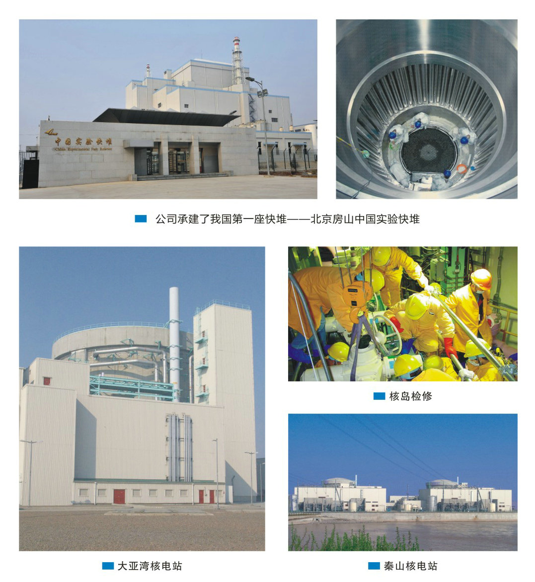 自上世紀八十年代以來,公司參與了廣東大亞灣核電站建設、承擔了北京房山中國實驗快堆常規島安裝、調試工程,秦山核電站一、二、三期檢修、運行、維護工作,廣西防城港核電站一期2X1080MW常規島建筑、安裝、調試工程、“華龍一號”(HPR1000)示范機組防城港核電站二期3、4號機組常規島及BOP建安工程,成為連續承建防城港核電站一、二期工程的施工企業。